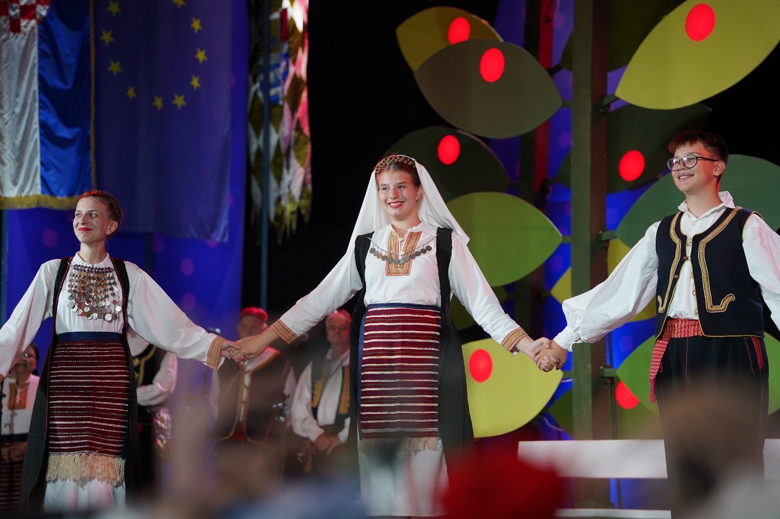 Ugođaj se nastavlja ispred glavne pozornice uz “Divan pod lampom”, a večer donosi još bogatiji program. Od 19:30 slijedi drugi dio Državne smotre izvornog hrvatskog folklora, kada će se na glavnoj pozornici predstaviti: