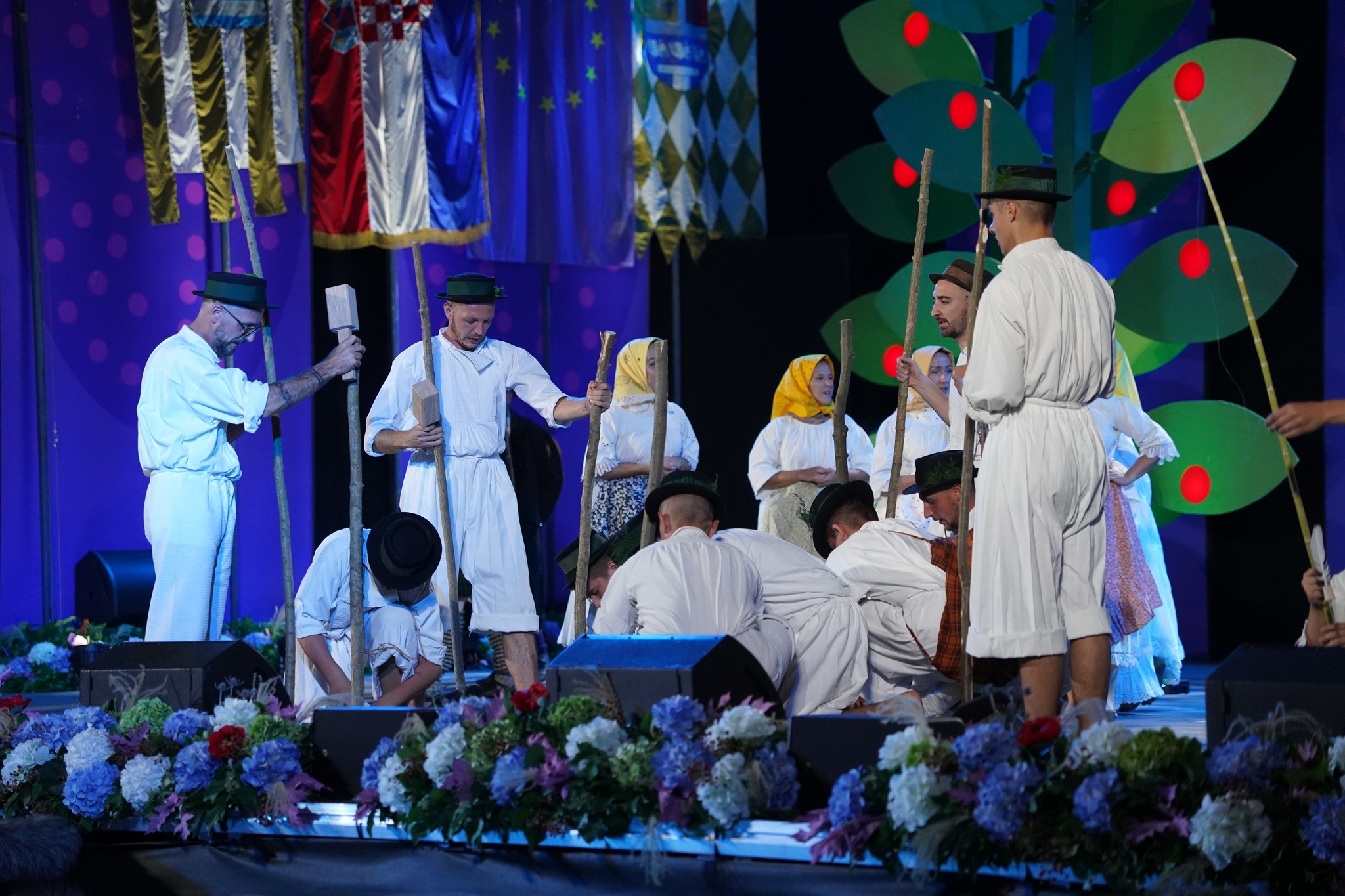 U večerašnjem programu nastupilo je oko 250 sudionika na pozornici sa scenografijom u ozračju voćnjaka Borinci koju potpisuje Dubravko Mataković.